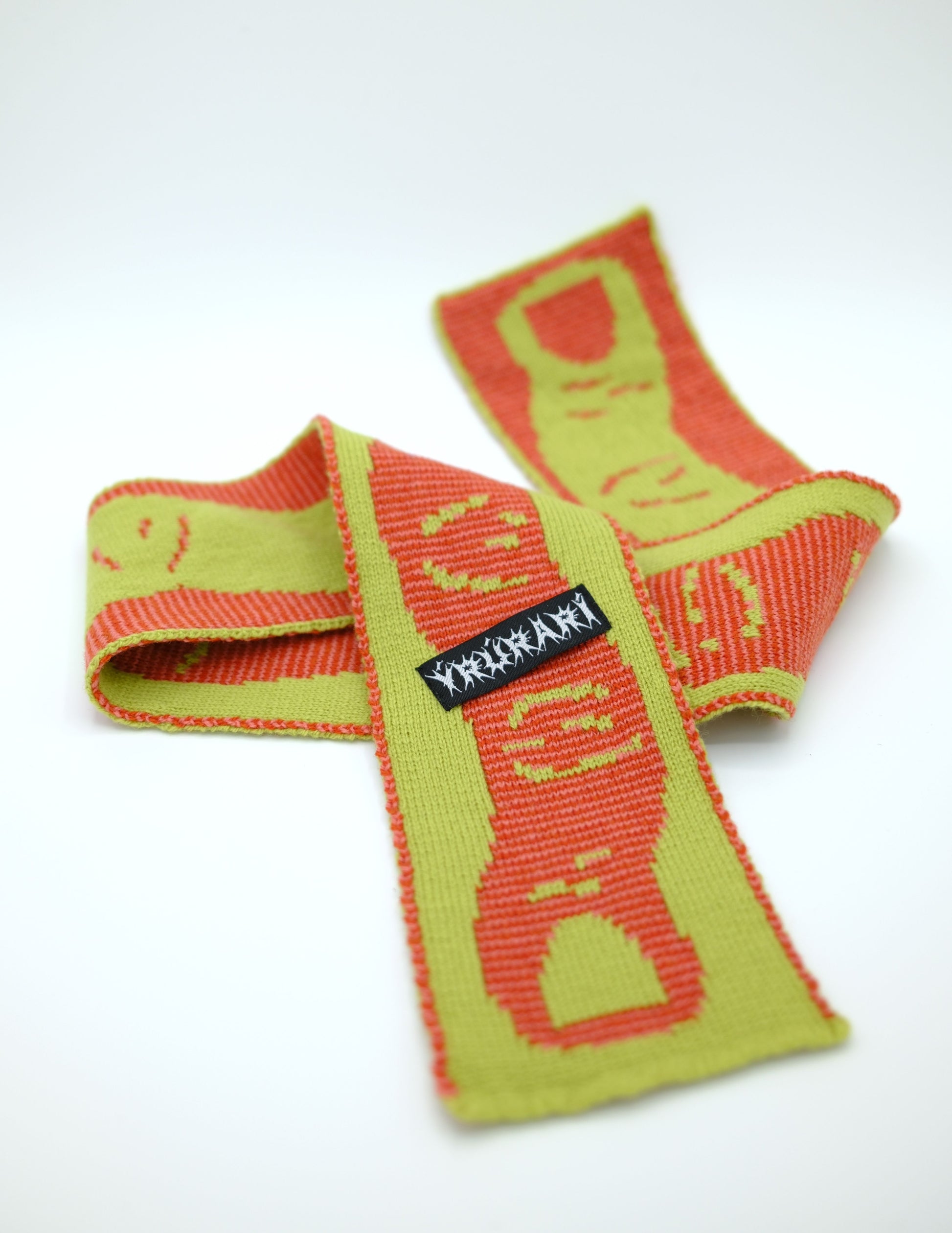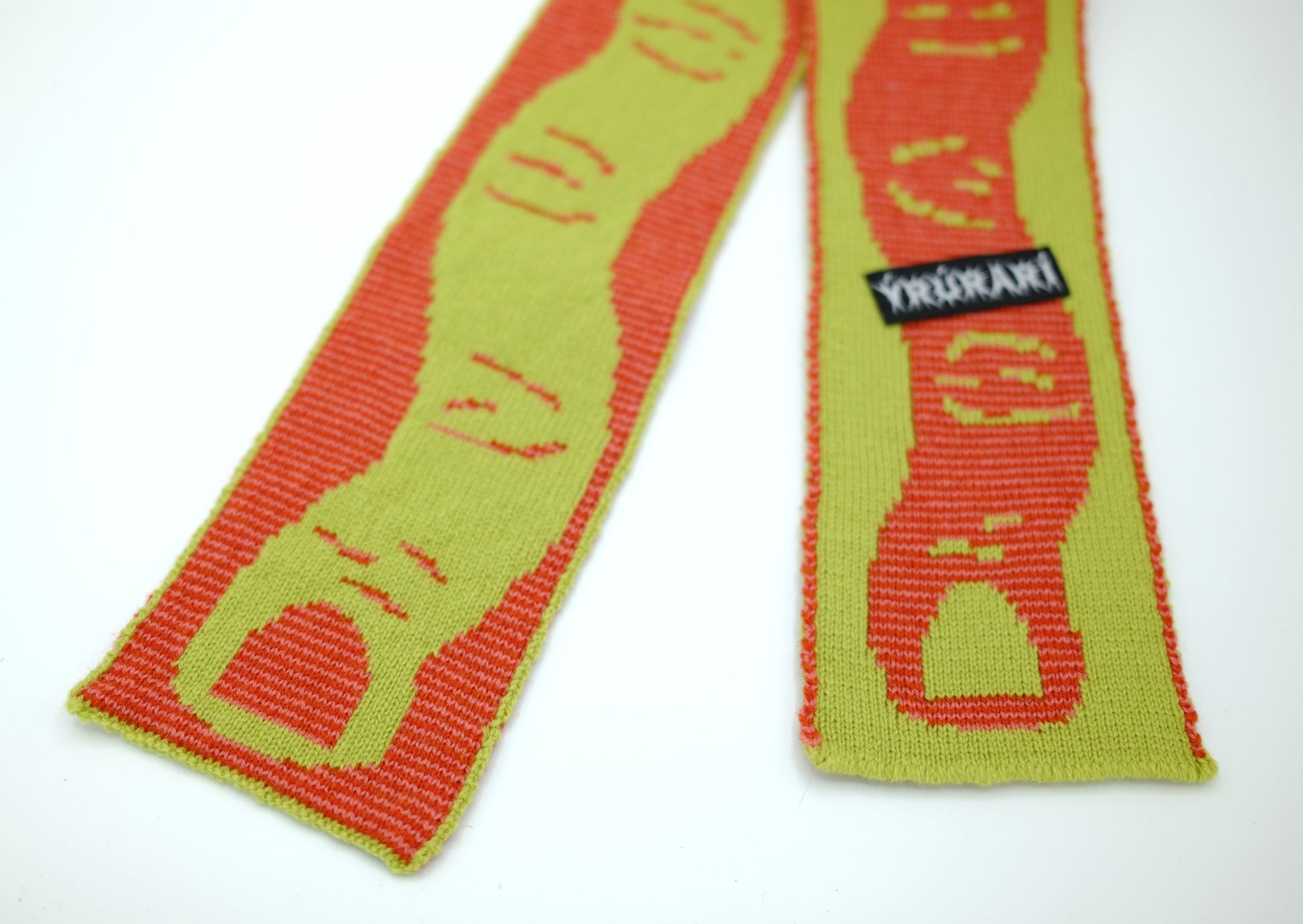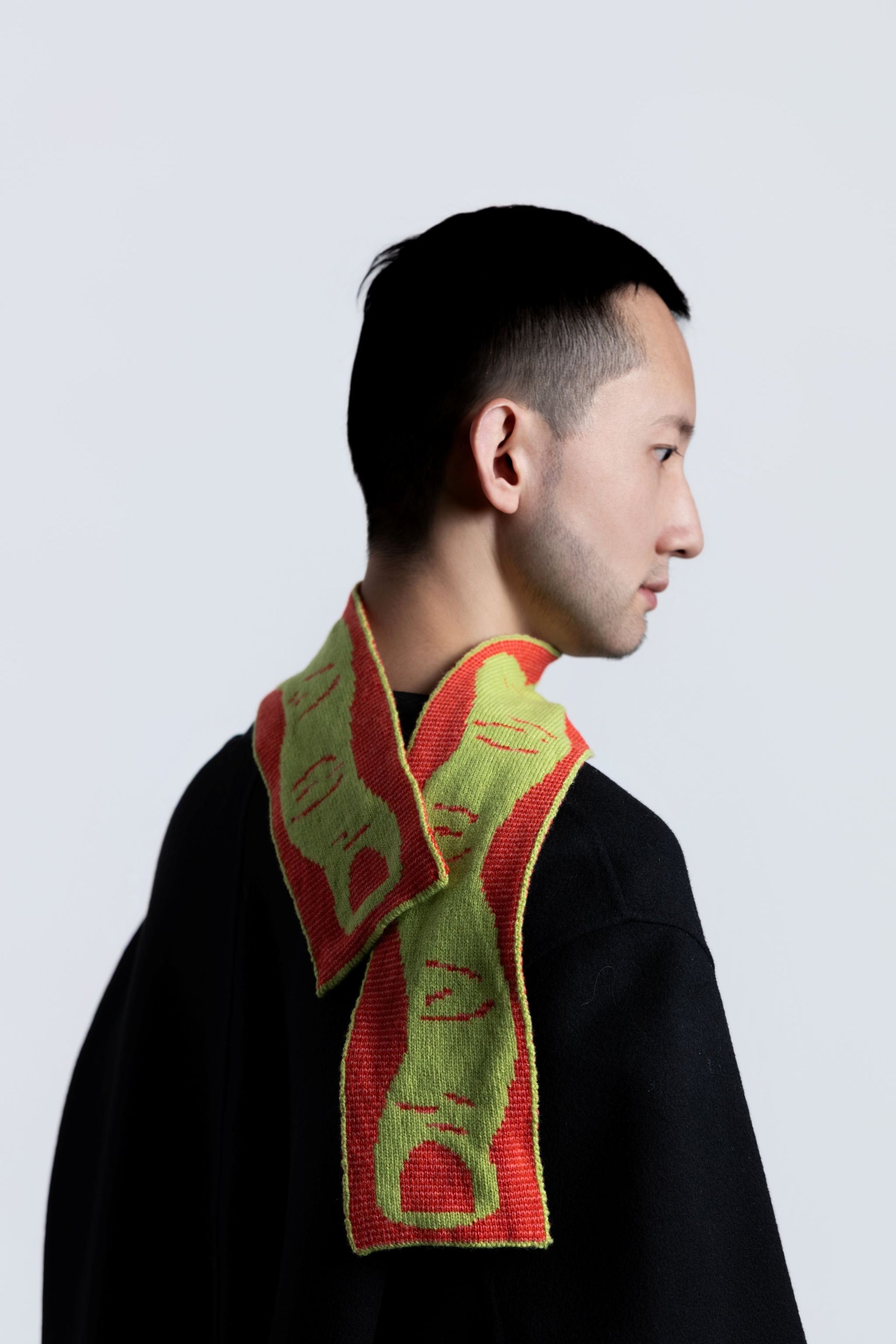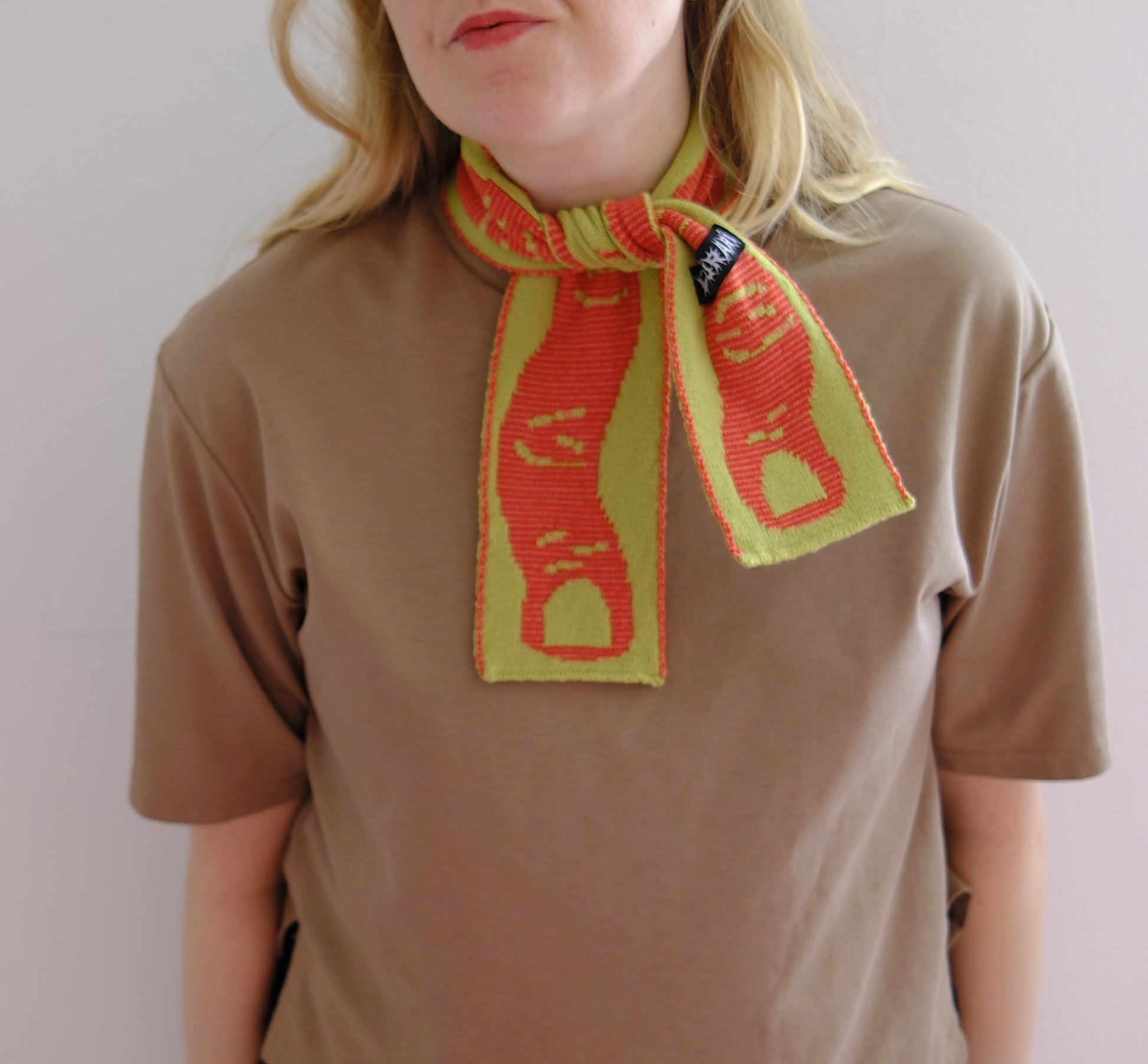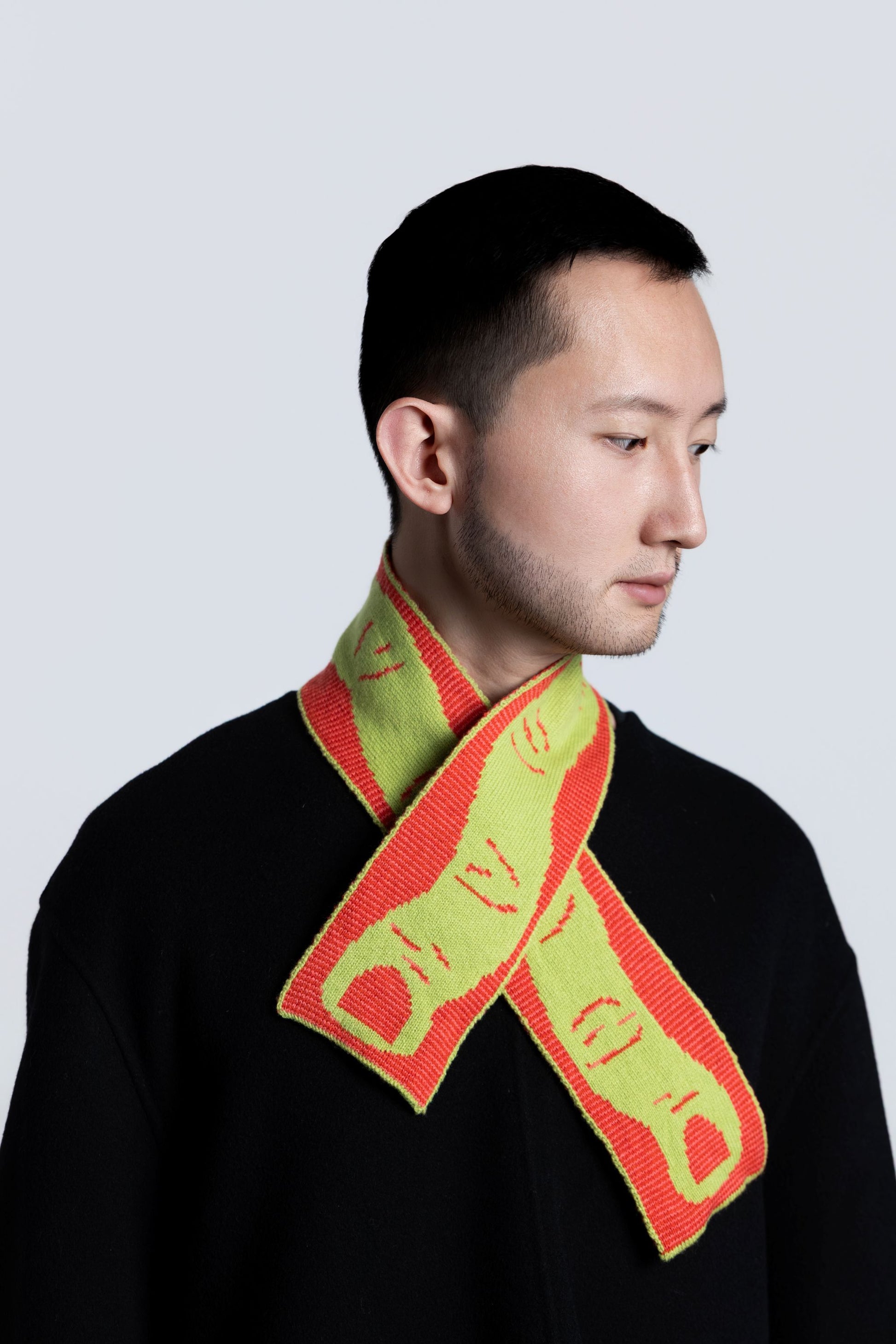Small scarf of green fingers, or red, depending on the side, based on an old scarf sketch.