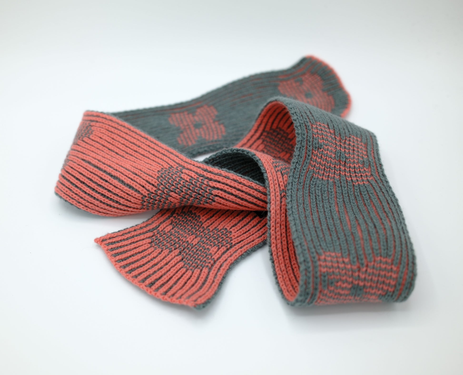 Scarf designed from sketches and experimentations for exhibition at DesignMarch in Reykjavík 2025. This is a shorter version of Tiny scarf for cold spring, adapted to the late summer days.